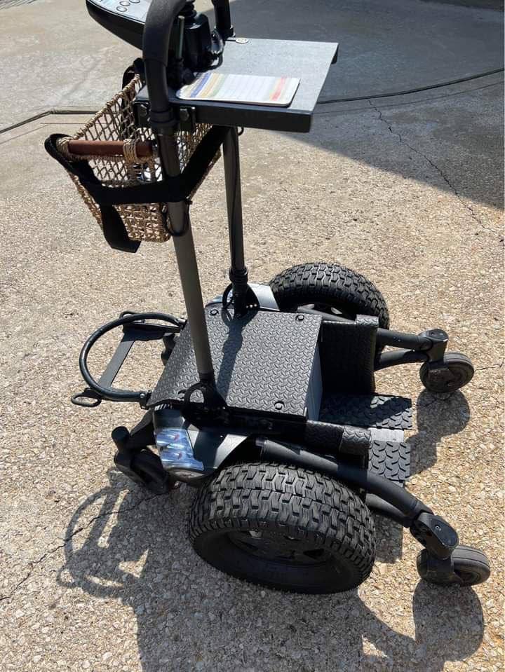 I can also help with your transportation needs. I use one of these devices personally for golf that has a wider wheel base because of the turf tires. I modified an electric hitch-mount wheelchair lift carrier, making it easy to get to or from the courses