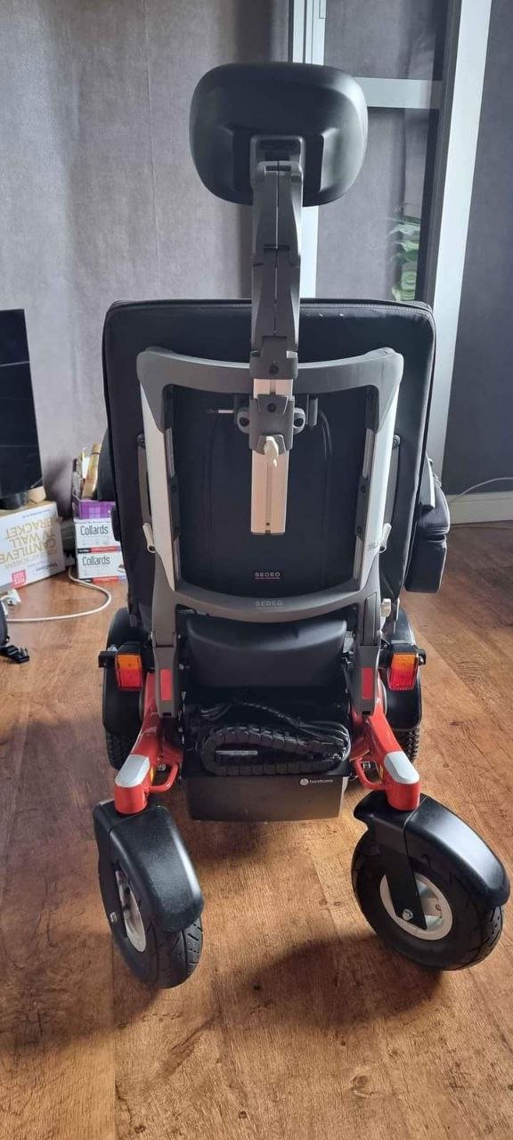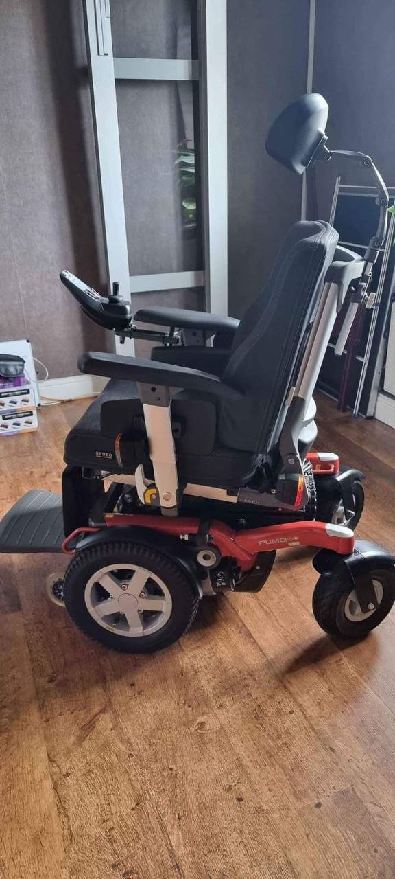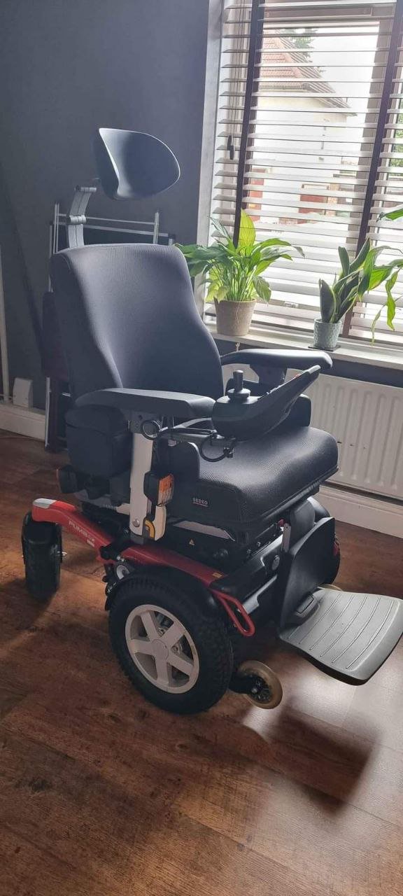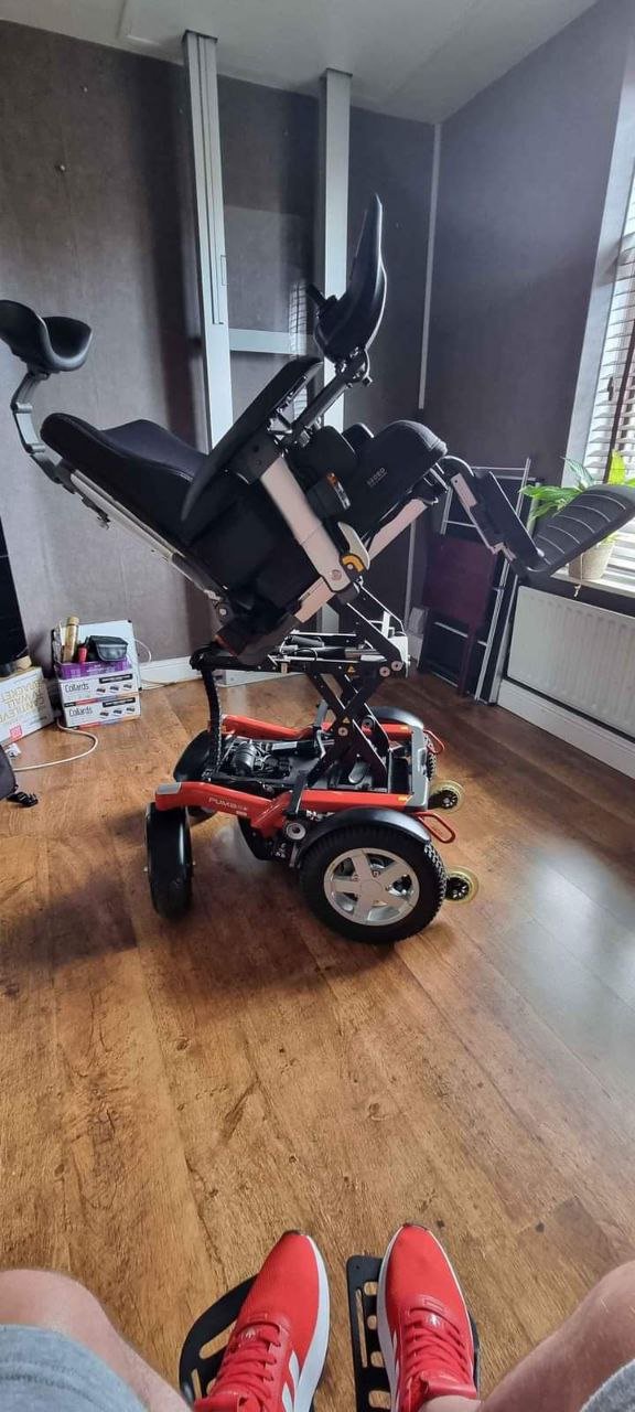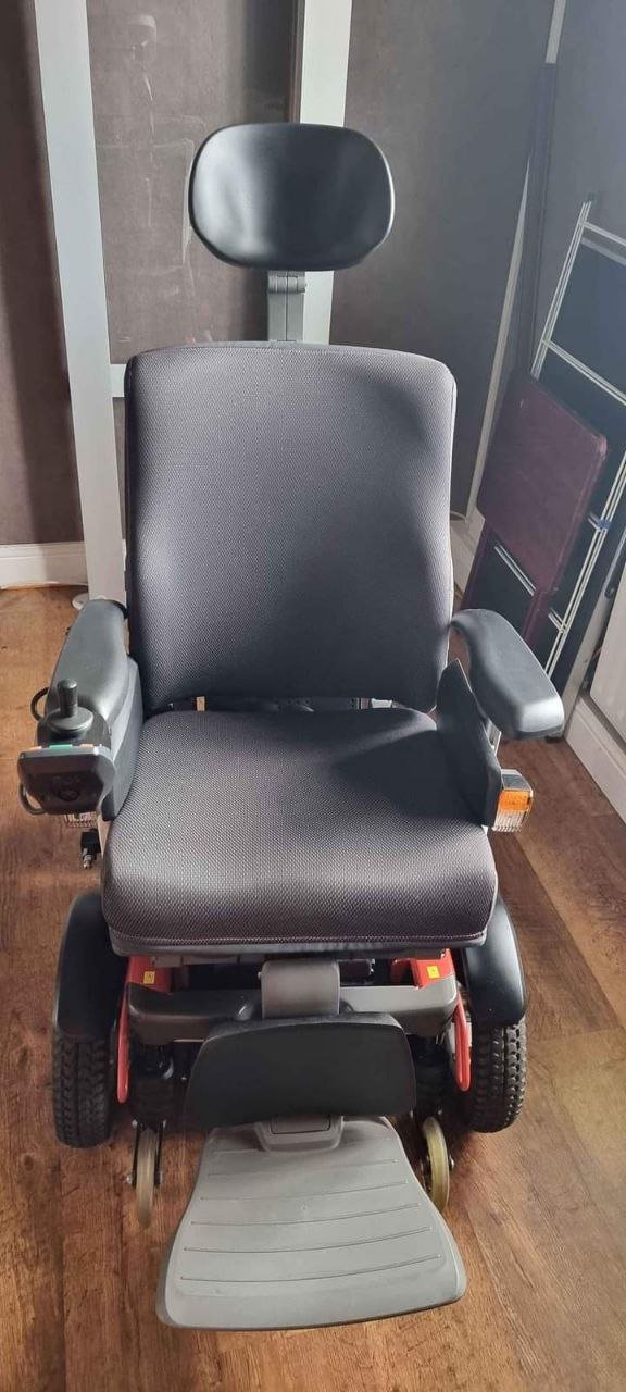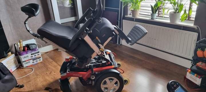 This chair has many top specifications like 12″ rise electric tilt and recline this chair is very well looked after and is capable of 8mph at the moment its set up as a front wheel drive but can be rotated to be rear wheel drive it has right side controls but this is again preference this chair is great on rough terrain any questions please ask